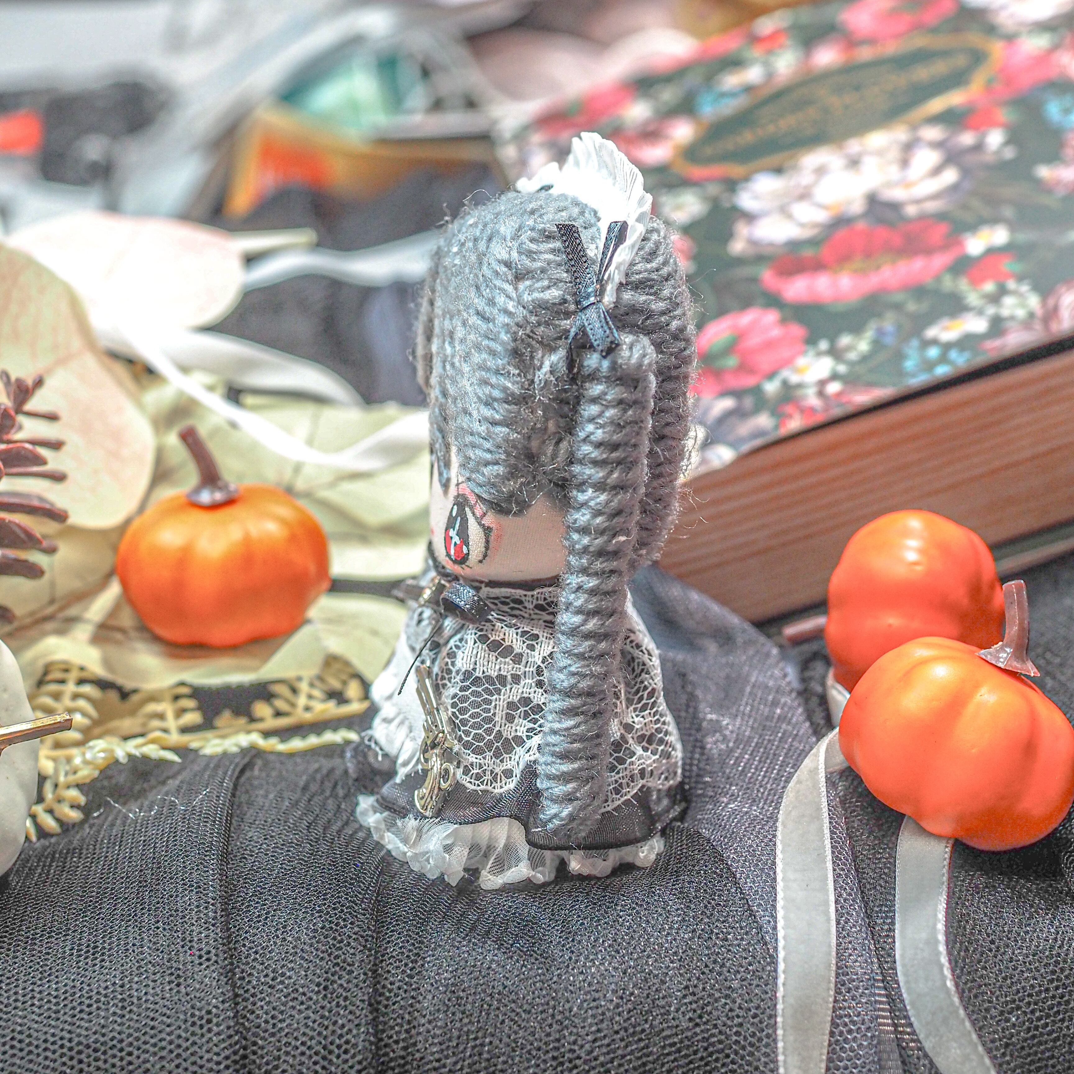 黒と白のクラシカルなドレスに身を包んだ姿は、可憐さの奥にひそむ冷たさを思わせます。