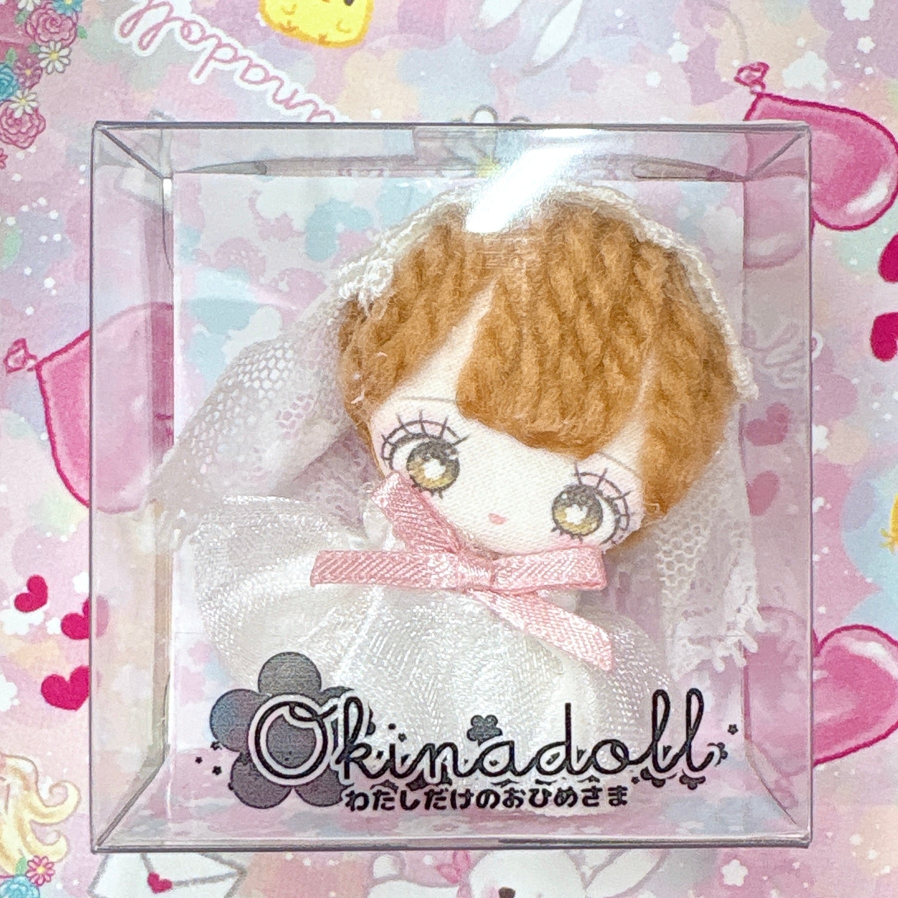 5cm×5cmの箱に入る程度の大きさしかない、Okina doll最小のドールです。お顔はデジタルで描いていますが、貼り付けるときに、微妙差が生まれる、一点物のドールです。