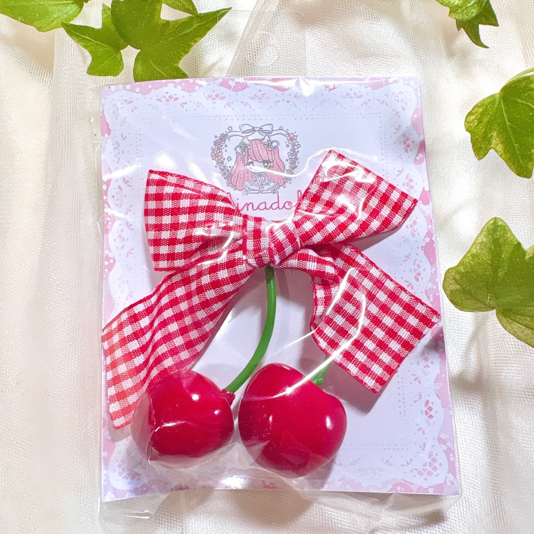 さくらんぼヘアクリップ Okina doll お洋服の欠片