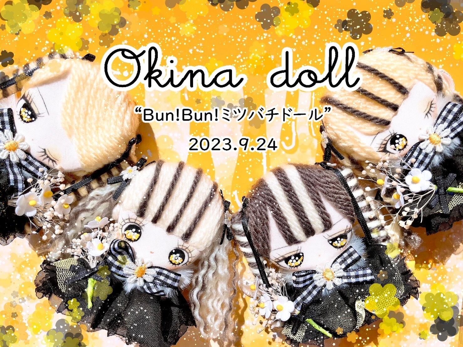 以前販売したハチさんドールが好評だったので、また作ってみましたが、前回とはお洋服の感じや、お顔、メイクなどちょっとずつ違う感じにしています。同じ感じで作ろうかなと、最初は思っていたのですが、つくっているうちに思いついたことを試したくなったりして、Okina dollは日々新しい子が誕生していきます。