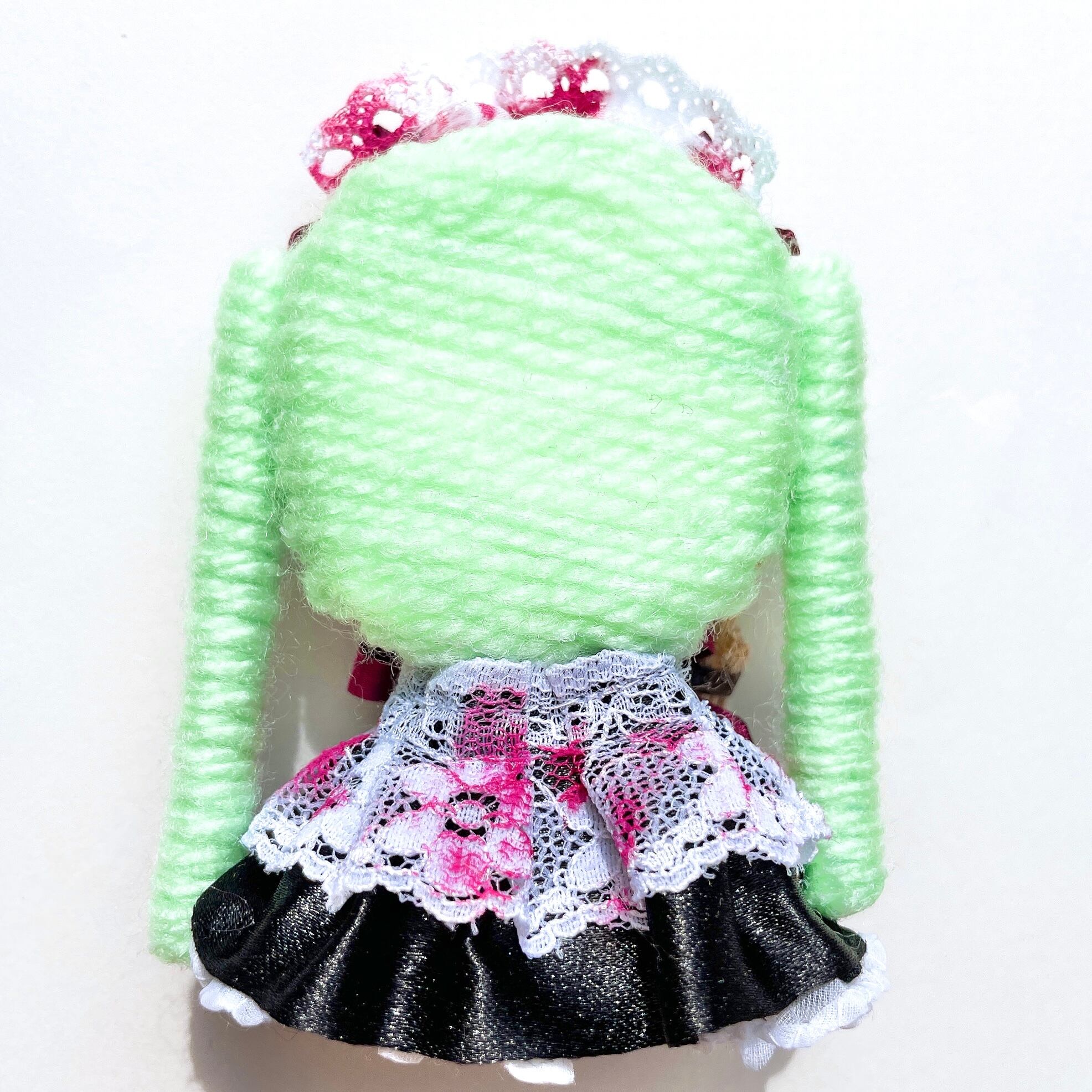 おめめもぐるぐるで、いつもの可愛らしいOkina dollとは違う、ホラー系ドールです。