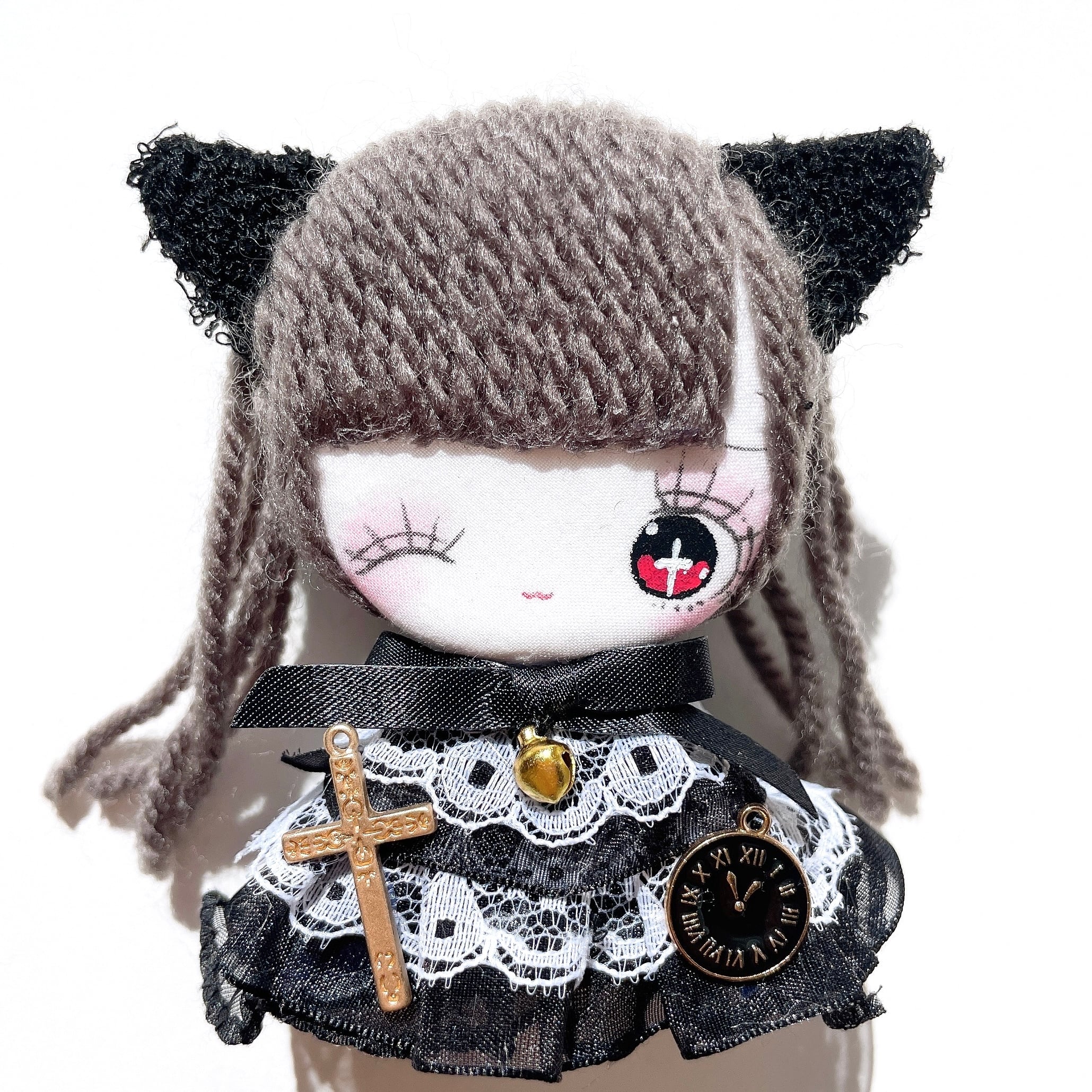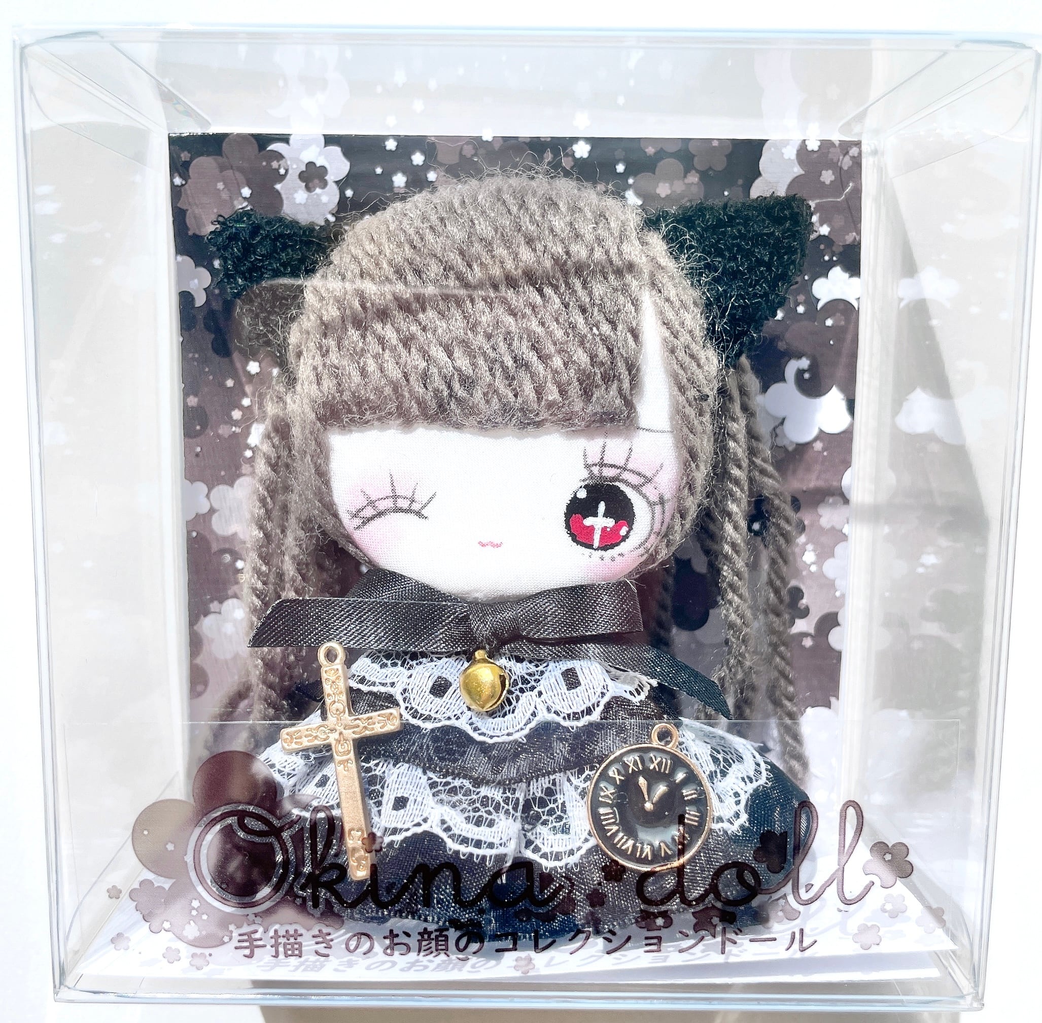 Okina dollのお顔はいつもお花のハイライトが多いですが、十字架もかわいいです!